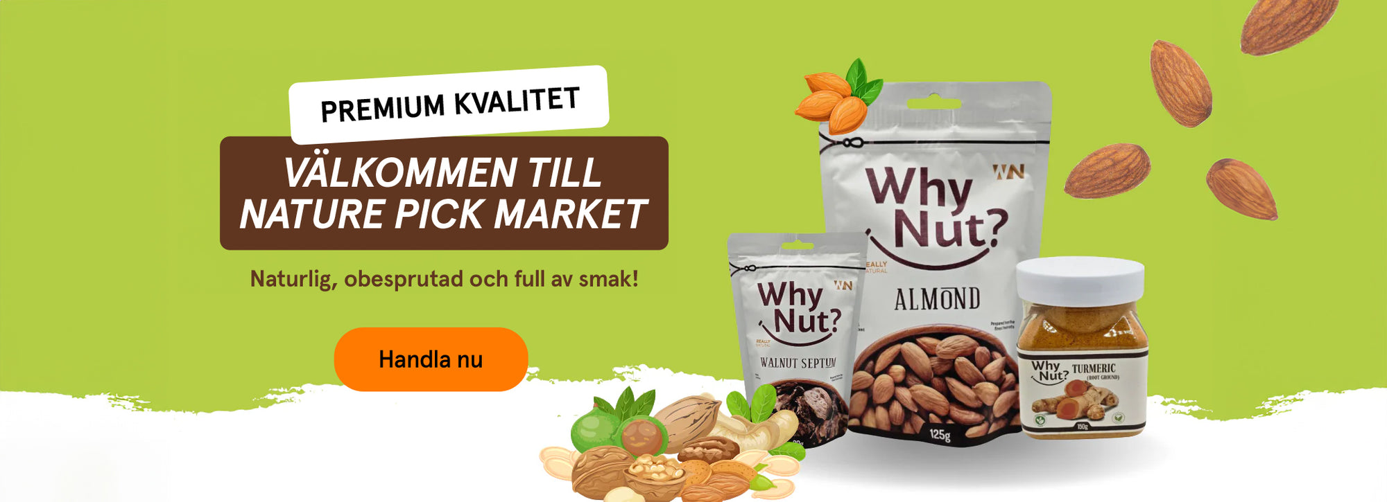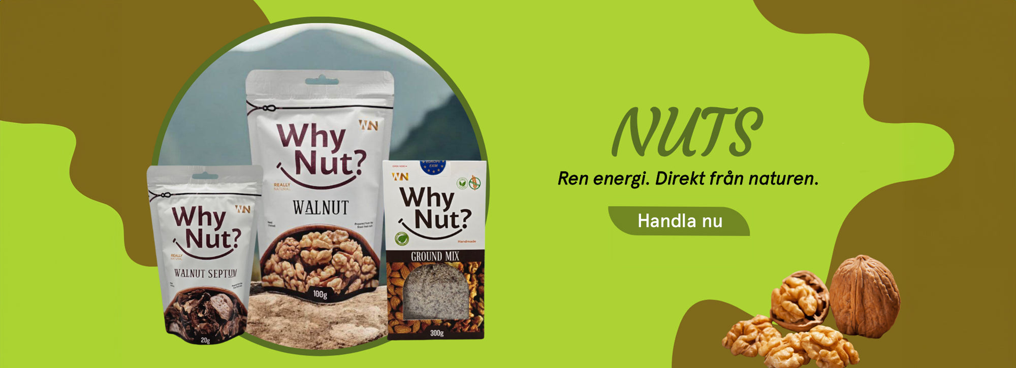 Upptäck naturens kraft i varje tugga! Why Nut?-produkterna är fyllda med rena, handplockade nötter, frön och teer – rika på näringsämnen, fulla av smak och fria från skadliga tillsatser. Från hjärtvänliga mandlar till antioxidantrika teer är varje förpackning utformad för att ge dig naturlig energi, fräschör och kvalitet du kan lita på. Ren. Hälsosam. Äkta – det är Why Nut.