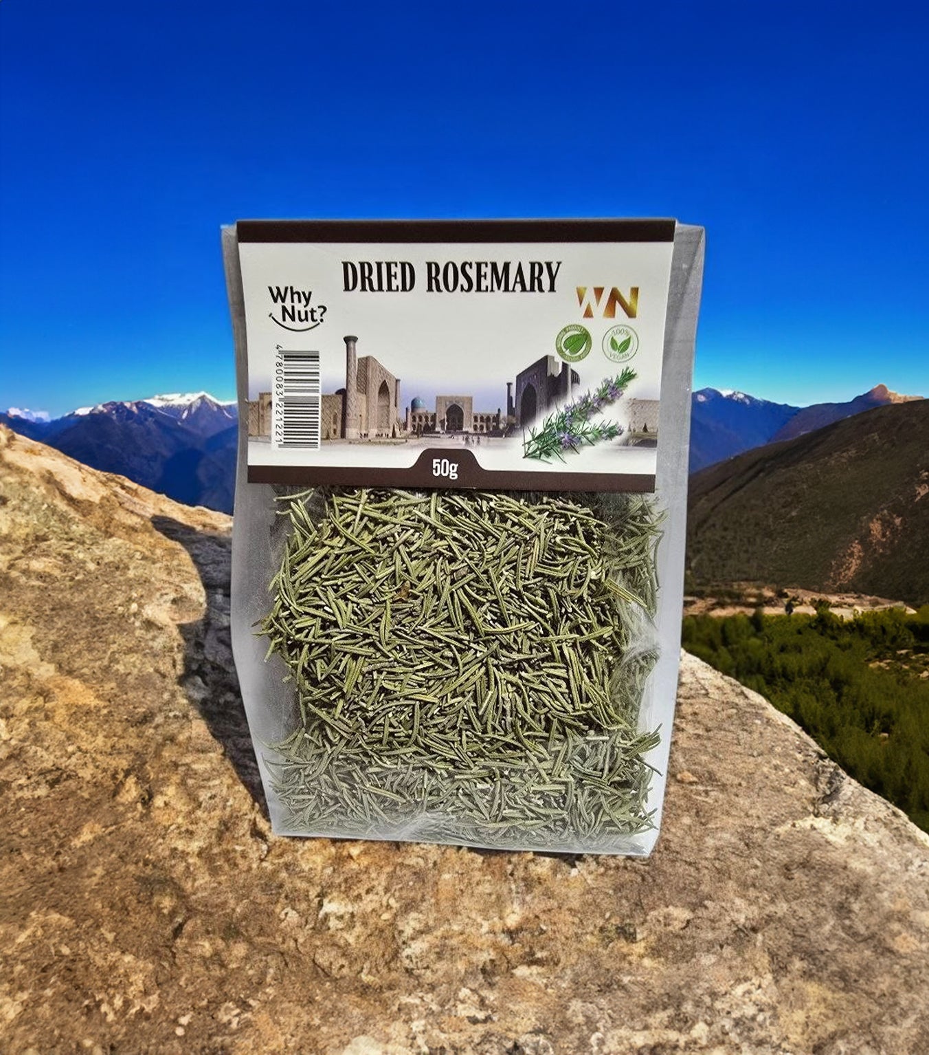 Vår torkade rosmarin är en klassisk krydda med en kraftig och aromatisk smak som lyfter dina maträtter till nästa nivå. Den är noggrant utvald och förpackad i en praktisk storlek på 50 g, perfekt för både vardaglig matlagning och mer avancerade rätter.